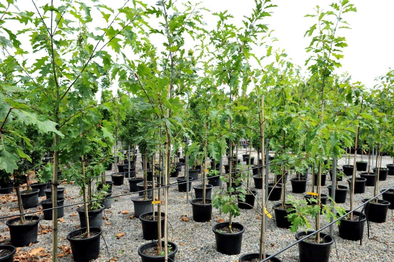 With a well rounded crown, a glossy green leaf, and a stunning deep red Autumn colour, the Scarlet Oak creates a picturesque landscape in any site .One of the many attractive features of the Scarlet Oak is its lower branching canopy, while still maintaining a nice shading area, it also provides a handsome shape to the tree. Producing a more oval-like acorn, and a nice dark grey bark, the Scarlet Oak is simply one of the best. While similar to the Pin Oak, a more majestic Autumn colouring and hairless leaf help distinguish the two from each other.