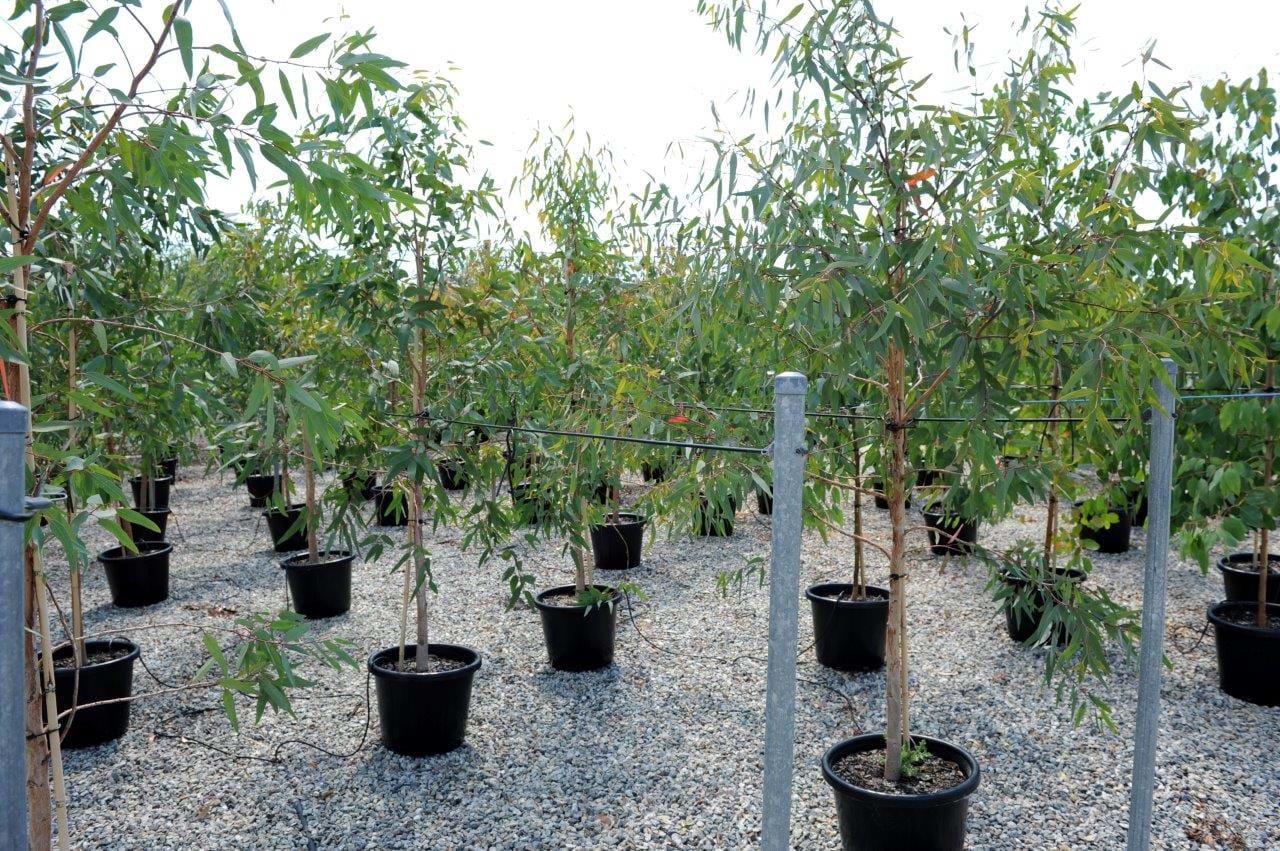 The River Red Gum is a tall shade tree with dark green foliage and a dark brownish-grey trunk. It grows naturally along waterways, river gullies and flood plains. It will grow in any soil type, as long as some water is available, but will thrive in wet ground. It produces a beautiful creamy-white flower in the summer time. The River Red Gum is also salt tolerant, and a very hardy tree, which will grow quickly to suit its environment.